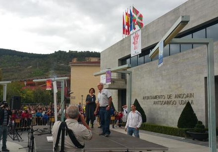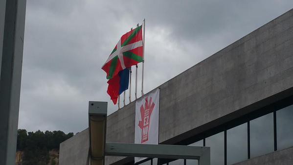 Ikurriña jarri zuten Antsoaingo Udaletxean. Eusko Autonomia Erkidegoko goi instituzioetako kideakziren ektaldiko gobidatuen artean. (Argazkia: @cesardeluis)