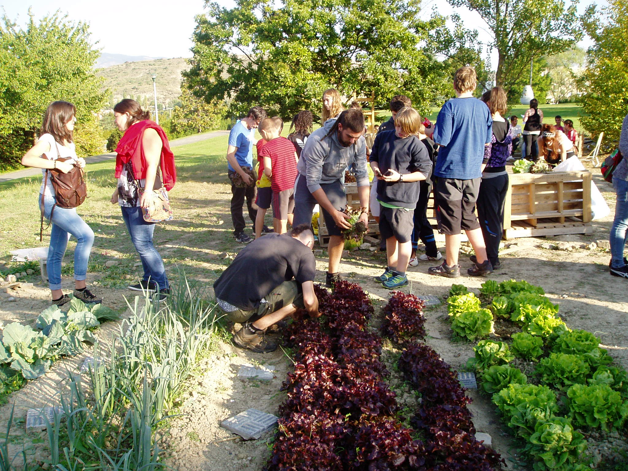 Proiektuko hainbat kide udal plazan izan ziren atzo, asmoa azaldu asmoz. Xedea da Alde zaharreko auzokideak inplikatzea eta nekazaritza ekologikoaren oinarriak gizarteratzea.