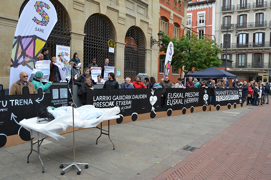 "Giza eskubideen trenari bagoi bat gehiago" batu nahi dio Sarek, eta, horretarako, presoen eskubideen aldeko mobilizazioa egin berri du, Euskal Herriko hainbat txokotan. Metafora: trena. Eta, hain zuzen ere, tren bat irudikatuz elkartu dira herritarrak iragan asteburuan Iruñeko San Frantzisko plazan.