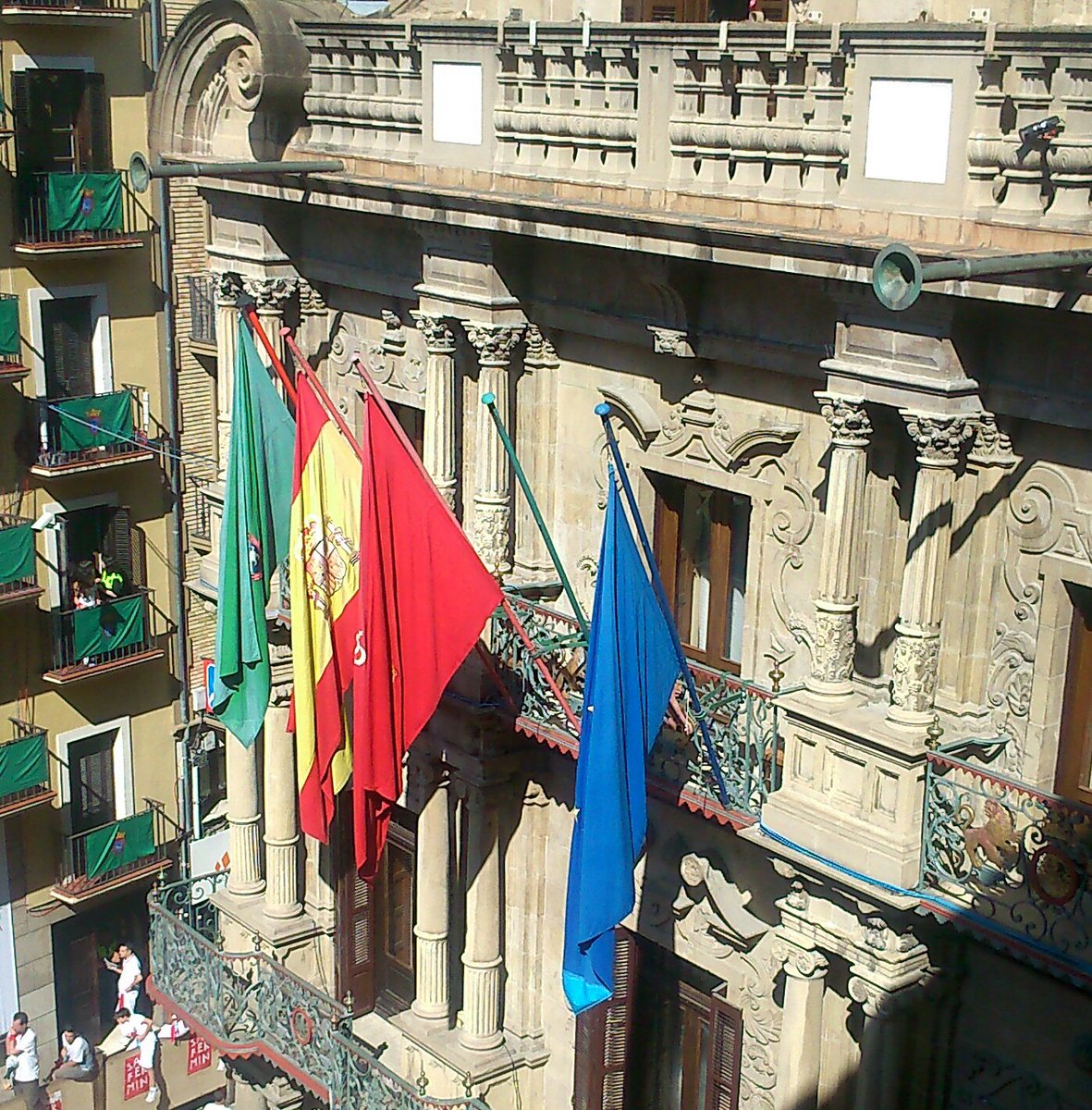 Iruñeko, Espainiako, Nafarroako eta Europako banderen artean, banderarik ez duen masta huts bat utzi dute. Ikurrinari egindako keinu da.