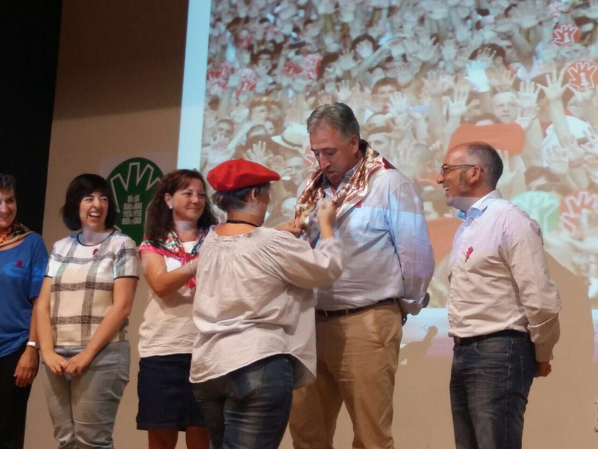 Sanferminetako eraso sexisten kontra egindako lana dela eta, Iruñea saritu nahi izan du Jaizkibel alarde parekideak. Jaizkibeleko koloretako zapia eskaini diote Joseba Asiron alkateari.