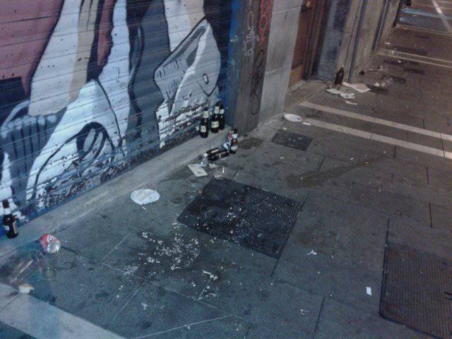 Horren guztiaren ondorioz, jendetza ikaragarria elkartu zen ohiko lekuetan: Nabarreria, Tejeria, San Nicolas… Eta jendetza horrek zikinkeria tonaka utzi zuen karrikotan, Nabarreria plazan bizi den Irikaitz txiolariak Twitterrera igotako irudietan ikus daitekeenez.