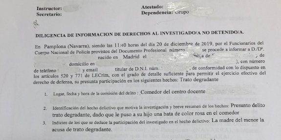 Polizia Nazionaleko agente batek hartu zion deklarazioa adingabearen amak akusatutako irakasleari, eta haren salaketa guardiako epaitegian tramitatuko dute. Twitter bidez zabaldu dute gertatutakoa: