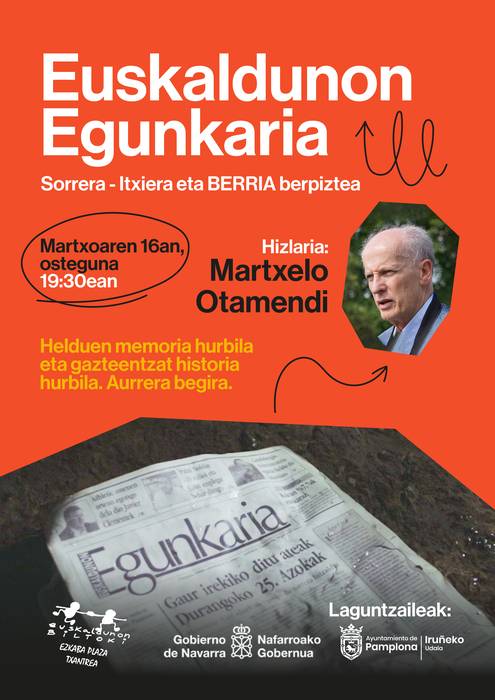 Martxelo Otamendi Berria egunkariaren zuzendariaren eskutik Euskaldunon Egunkaria. Sorrera-Itxiera eta BERRIA berpiztea hitzaldia eta ondoren, afaria. Martxoaren 16an, osteguna, arratsaldeko 19:30ean Biltokin.