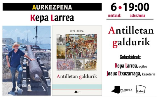 Kepa Larrea egileak aurkeztuko du Antilletan galdurik liburua Jesus Etxezarraga kazetariak lagunduta. Pamiela argitaletxeak antolatuta, arratsaldeko 19:00etan, Laban.