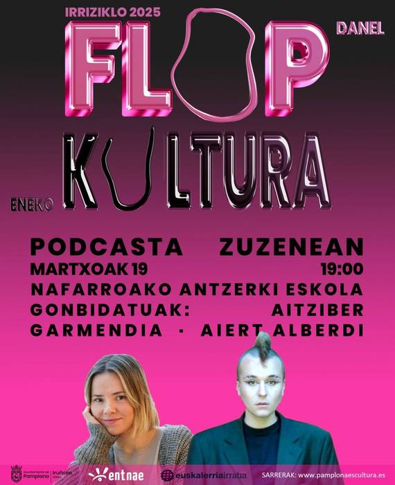 Otsailaren 28an abiatu zen Irriziklo euskarazko antzerki zikloaren edizio berria, Iruñeko Udalak eta Nafarroako Antzerki Eskolak antolatuta. Umorea baliabide nagusitzat hartuta, formatu txikiko eta euskarazko proposamenak ikusteko aukera dago Nafarroako Antzerki Eskolan. Bihar, asteazkenarekin, Flop Kultura bideopodcastaren zuzeneko saioak emango dio amaiera zikloari. Arratsaldeko 19:00etan hasiko da saioa eta bi gonbidatu berezi izango dituzte Danelek eta Enekok: Aitziber Garmendia aktorea eta Aiert Alberdi musikaria.