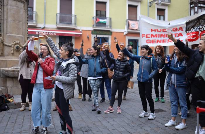 Kalera atera dira Nafarroako mugimendu feministako kideak, hilabete barru, azaroaren 30ean, egingo den greba feminista orokorrean parte hartzera deitzeko. «Lan handia dugu aurretik, eta indarrez eta ilusioz ekingo diogu», esan dute Zaintzaren Nazioarteko Egunaren karietara atzo egindako ekimenean. Nabarreria plazan brindisa egitearekin batera, gizarte osoari dei egin diote greba antolatzeko prozesura batzera, auzoetako eta lantokietako greba batzordeetan parte hartzera.