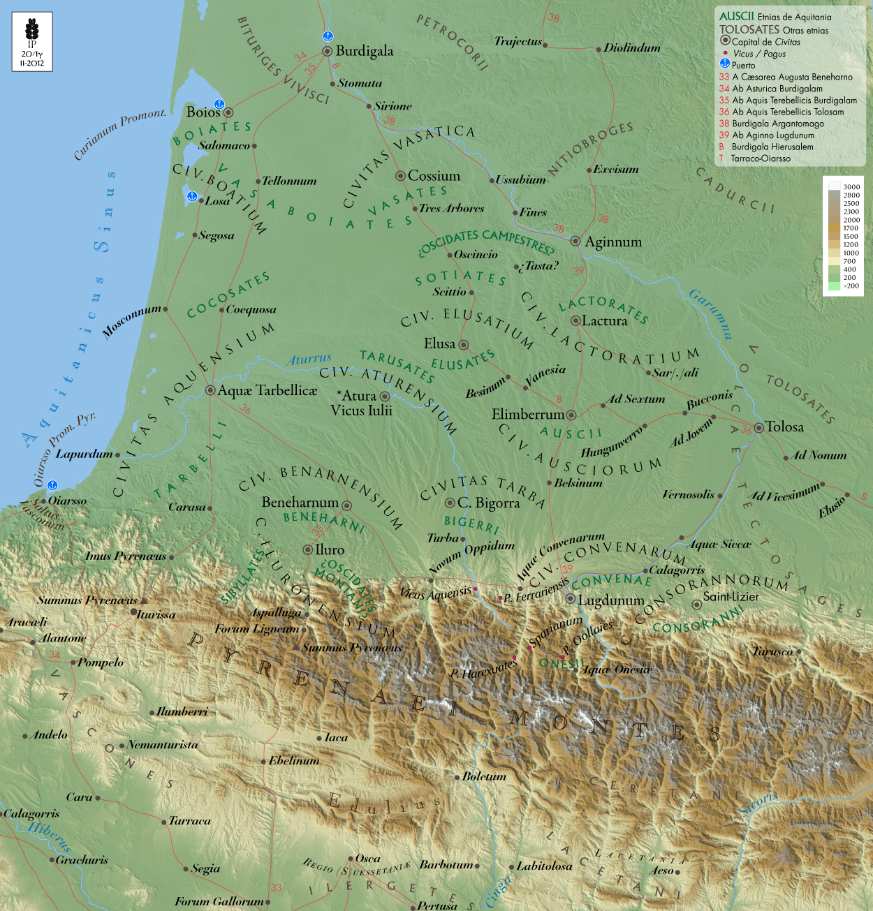 Dicho esto, no queda sino constatar que la reducida Vasconia de época romana se extendió en siglos posteriores, siglos V al VIII, y su nombre se fue aplicando a las regiones situadas a ambos lados de la cordillera pirenaica occidental. Hecho llamativo, porque no olvidemos que en época romana, al menos sobre los mapas, incluso las tierras de la actual Baja Navarra quedaban fueran de Vasconia, en Aquitania. Por otro lado, tanto en crónicas visigodas, francas como árabes se sigue utilizando el etnónimo vascón para los habitantes de la actual Navarra, incluso al hacer referencia a los reyes de Pamplona. Sin embargo, en paralelo a esta extensión de los términos vascón o gascón y Vasconia, en el mencionado solar vascón surge un nuevo etnónimo a partir del siglo VIII que paulatinamente se irá imponiendo: navarri, los navarros.