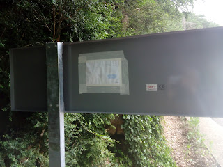 En estas fotografías se muestren los carteles instalados y el sobre de remite del material expuesto también en la parte trasera de la señalización en la Foz de Burgui.