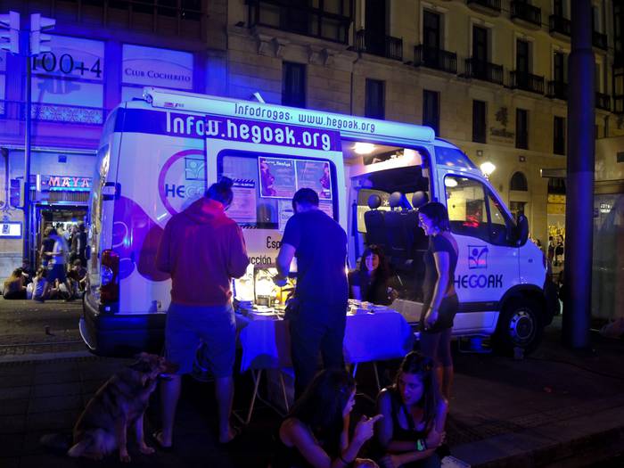 Hegoak-ek urte asko darama Barañaingo jaietan esku hartuz. Herriko festetako errealitateari gerturatzen zaio, errealitate honetan oinarritutako esku-hartzea burutzen du drogen kontsumoa ematen den testuinguruan bertan, fenomeno honekin lotutako arriskuak murrizteko.