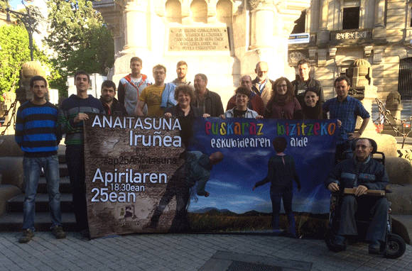 Alor desberdinetan aritzen diren hainbat lagunek larunbatean Anaitasunara joateko deia egin dute Iruñeko Foruen monumentuaren aitzinean.