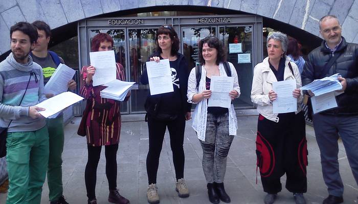 Ikastetxetik kanpoko probak dira LOMCE legeak ezarri nahi dituenak. Hezkuntza sistemak ezartzen du Lehen Hezkuntzako eta Derrigorrezko Bigarren Hezkuntzako ziklo bukaeretan azterketak egin behar zaizkiela ikasleei. Lehen Hezkuntzako 3. mailako ikasleek izanen lukete mota horretako azterketa lehenengoz. "Proba horiek desegokiak dira eta lekuz kanpo daude, ez dute ikastetxearen kalitatea neurtzeko balio eta are gutxiago hezkuntza sistemarena zenbaterainokoa den erakusteko", hala nabarmendu du Sortzen elkarteko Garikoitz Torregrosak. “Eskolen arteko lehia” sortzeko erabiliko dituztela ohartarazi dute. LOMCEk ezartzen dituen azterketa horien aurka sinadurak bildu dituzte Sortzen eta Herrikoa gurasoen plataformek. Mila sinadura erregistratu dituzte Hezkuntza Departamentuan. "Desadostasuna adierazi nahi dugu legeak ziklo bakoitzaren amaieran egin nahi dituen azterketen aurrean, baina horrez gain, informazioa ere eskatu diogu Departamentuari proba horien helburuen inguruan", hala nabarmendu dute guraso elkarteen plataformek.
