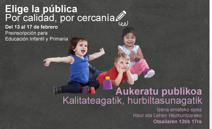 Ikastetxe publikoen aldeko kanpaina abiatu du Nafarroako Gobernuak. Horrekin batera Haur eta Lehen Hezkuntzako aurre-matrikulazio kanpaina hurbildu ahala, 'eremu ez-euskaldunean' D ereduari buruzko informazioa zabalduko dute. Horretarako hiltzaldiak eskainiko dituzte gaurtik aurrera eta otsailaren 7ra arte. Lodosan eta Castejonen ekinen diote gaur.