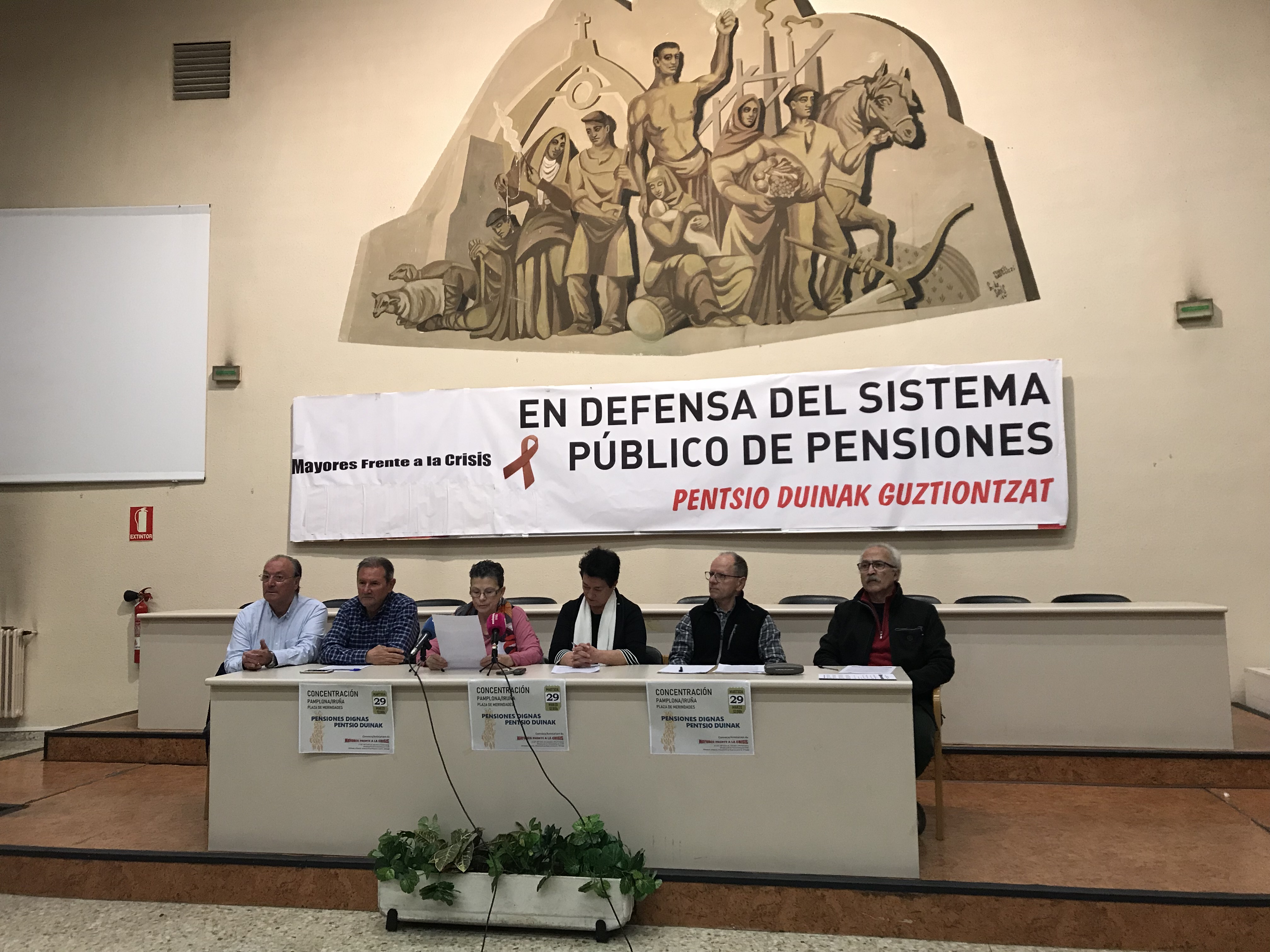 Nafarroan 140.000 pentsiodun daudela azpimarratu dute, eta beraz, hauteskunde indar handia dutela argi utzi nahi izan dute. Horrexegatik beren eskakizunak plazaratu dizkiete indar politiko ezberdinei. Egiazko KPIaren araberako pentsio igoera, 2012 eta 2013ko pentsio eta lan erreformak indargabetzea, Europako Gutun Sozialaren gomendioek ezartzen duen pentsio minimoak bermatzea eta etorkizuneko belaunaldien pentsioak baldintzatzen dituen jasangarritasun faktorearekin bukatzea. Berriz ere kalera irtengo dira, ostiral honetan, eguerdian, Merindadeen plazan, gobernu delegazioaren aurrean kontzentrazioa egitera. Anapen, Anapp, Lacarra elkartea, CCOOko pentsionisten federazioa, UGTko pentsiodunak eta Sasoiak deitu dute protesta.