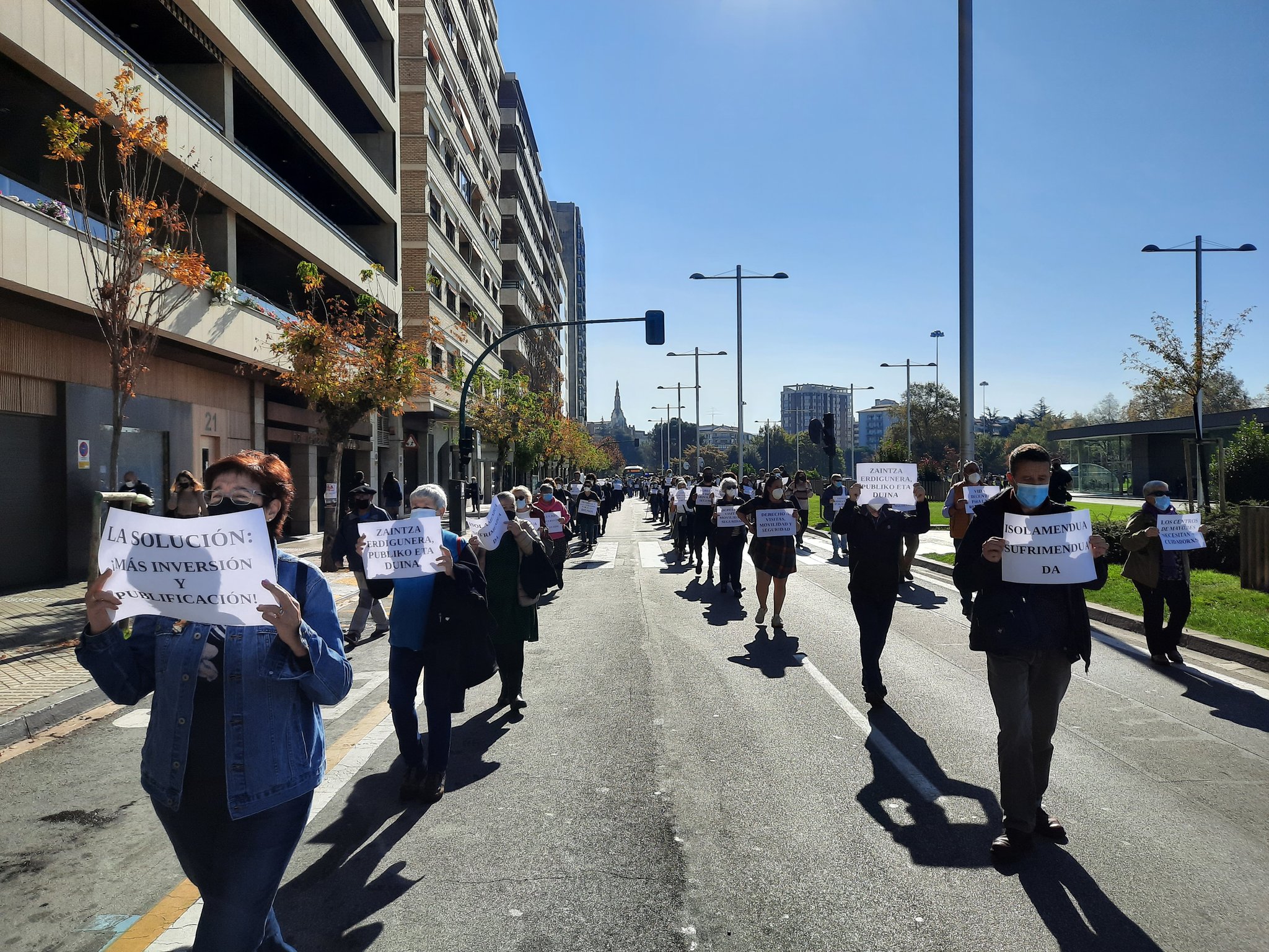 Adinekoen etxeetan senideak dituzten eta horietan norbait hil zaien hainbat pertsonak osatu dute Zainduz elkartea. Larunbatekoa izan da antolatu duten lehen ekitaldia. SOS zahar egoitzak. Zaintza erdigunera, publikoa eta duina zioen pankarta batean egin zuten Misericordia Etxetik Nafarroako jauregira bitarteko bidea. Zahar etxe horren barruan ere egoiliar batzuek protesta egin zuten.