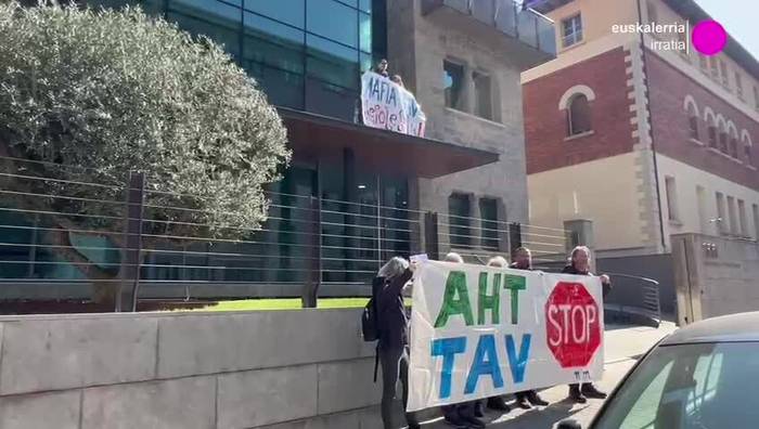 Abiadura Handiko Trenaren alde diren enpresari eta eragileen bileraren atarian, AHT Gelditu taldeko kideek protesta egin dute CEN-en egoitzan. "Elite enpresarialaren aurrean etorri gara, gutxi batzuk dira gure lurraldearen txikizioarekin aberasten ari direnak" adierazi dute ekintza amaituta. AHTaren aldeko plataforman bildu dira enpresariak, CEN, Nafarroako Ostalarien elkartea, UGT sindikatua edo ta Osasuna futbol taldea besteak beste.